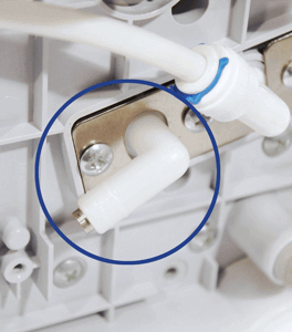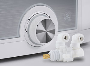 Mittels Abflussregler beim Ausflussbogen, kann die Menge des sauren Wassers mechanisch reguliert werden. Dies hat wiederum Einfluss auf den pH-Wert. Zudem hilft es, Wasser zu sparen. Im Normalfall liegt das Verhältnis sauer bzw. basisch bei 40/60, kann aber je nach Wassereigenschaft zwischen 20/80 und 50/50 eingestellt werden.