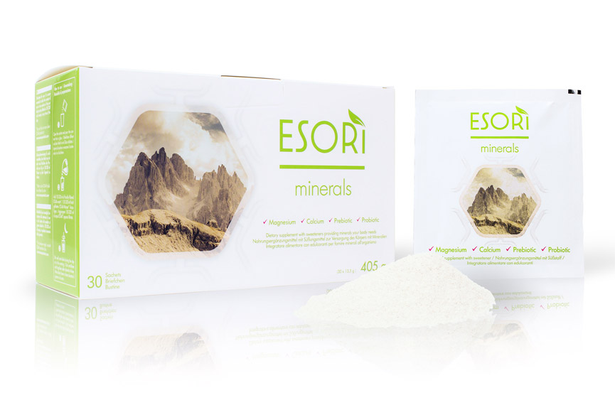 ESORI minerals ist ein Mineralstoffprodukt mit den Vitaminen K2 und D3. Darüber hinaus enthält es viele verschiedene Spurenelemente und Substanzen mit prä- und probiotischer Wirkung.