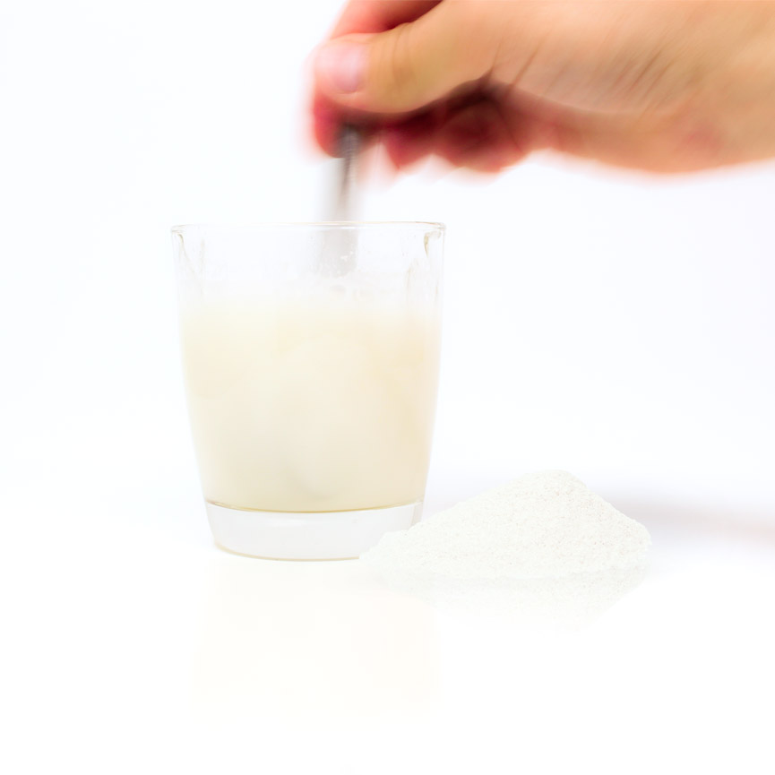 Süßungsmittel Erythrit (32,8%), Fructooligosaccharide, Kaliumchlorid, Kalziumglycerophosphat, Säureregulator Zitronensäure, tribasisches Calciumcitrat, Magnesiumcitrat, Magnesiumhydroxid, Cultavit® S1 ((Trockenextrakt aus Buchweizensprossen (Fagopyrum esculentum Moench - Frucht) titriert in Zink, Kupfer und Mangan)), Cultavit® S2 ((Trockenextrakt aus Buchweizensprossen (Fagopyrum esculentum Moench - Frucht) titriert in Eisen, Chrom und Molybdän)), natürliches Aroma, Säureregulator Natriumbikarbonat, Bambussprossen (Bambusa vulgaris Schrad. und Bambusa bambos (L.) Voss, in veränderlichen Anteilen) Trockenextrakt titriert zu 70% in Siliciumdioxid, Schachtelhalm (Equisetum arvense L.) Trockenextrakt titriert zu 10% in Siliciumdioxid, Süßungsmittel Steviol-Glykoside, Bacillus coagulans BC-513, Vitamin K2 (Menachinon-7), schwarzer Pfeffer (Piper nigrum L.) Fruchttrockenextrakt titriert zu 95% in Piperin, Vitamin D3 (Cholecalciferol), Kaliumiodid.